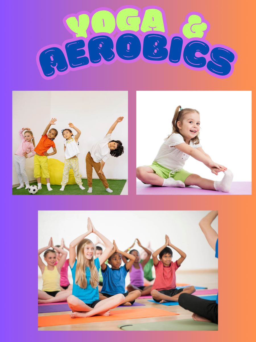 Each week is designed to be a mixture of Yoga on Monday and Aerobics on Thursday, with a dynamic and interactive experience. Sessions featuring age-appropriate exercises that resemble popular kids’ games. Children will dance, jump, and laugh together, forming friendships while staying fit during aerobics.