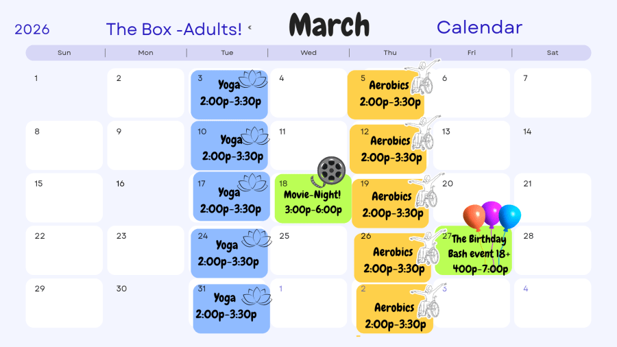 Our Yoga & Aerobics for Adults with Disabilities program is designed to inspire confidence, wellness, and joy through movement. For ages 18 and over.