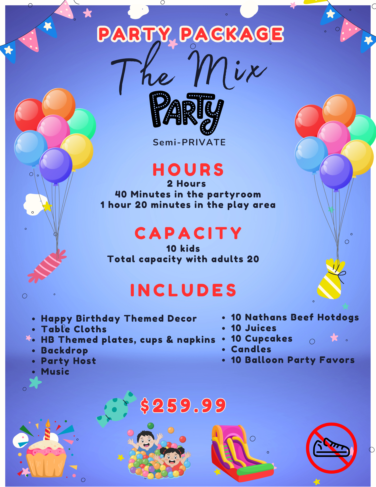 β¨ Mix means not private – this celebration is shared with other kids and families enjoying Open Play and Drop & Shop.