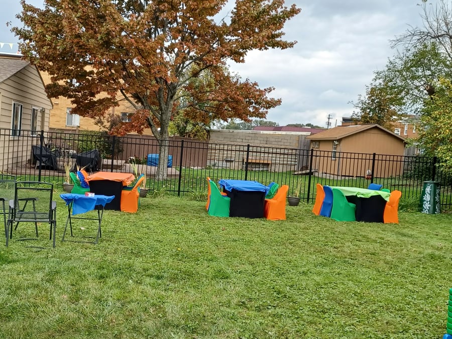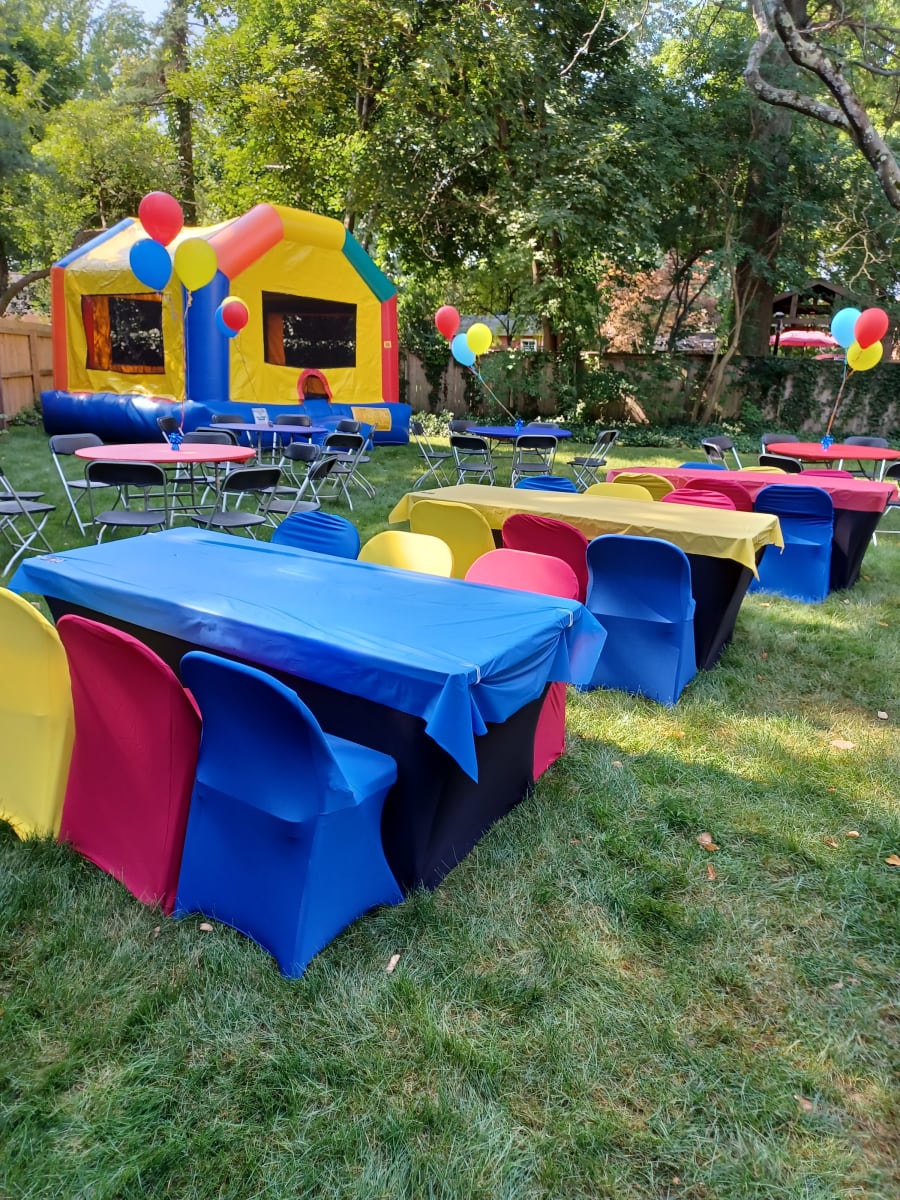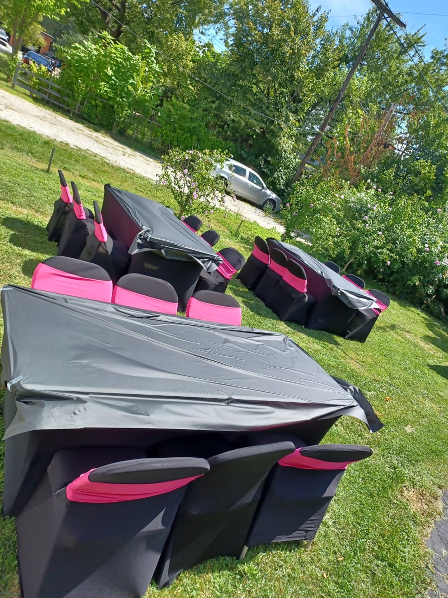 > Please note: Chair and table covers are required and included to ensure a uniform appearance, as furniture pieces may vary in color. Black is standard with the table rental. If you prefer a different color, a $10.00 per table