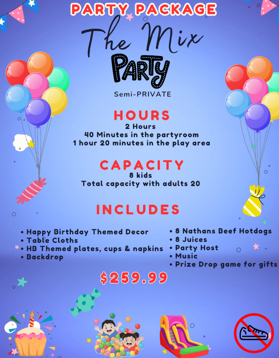 - Parties are 2 Hours with 40-45 minutes in the party room.