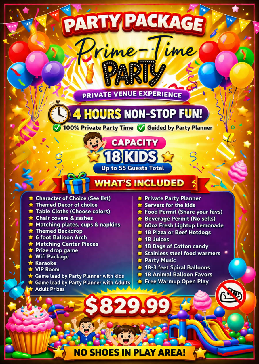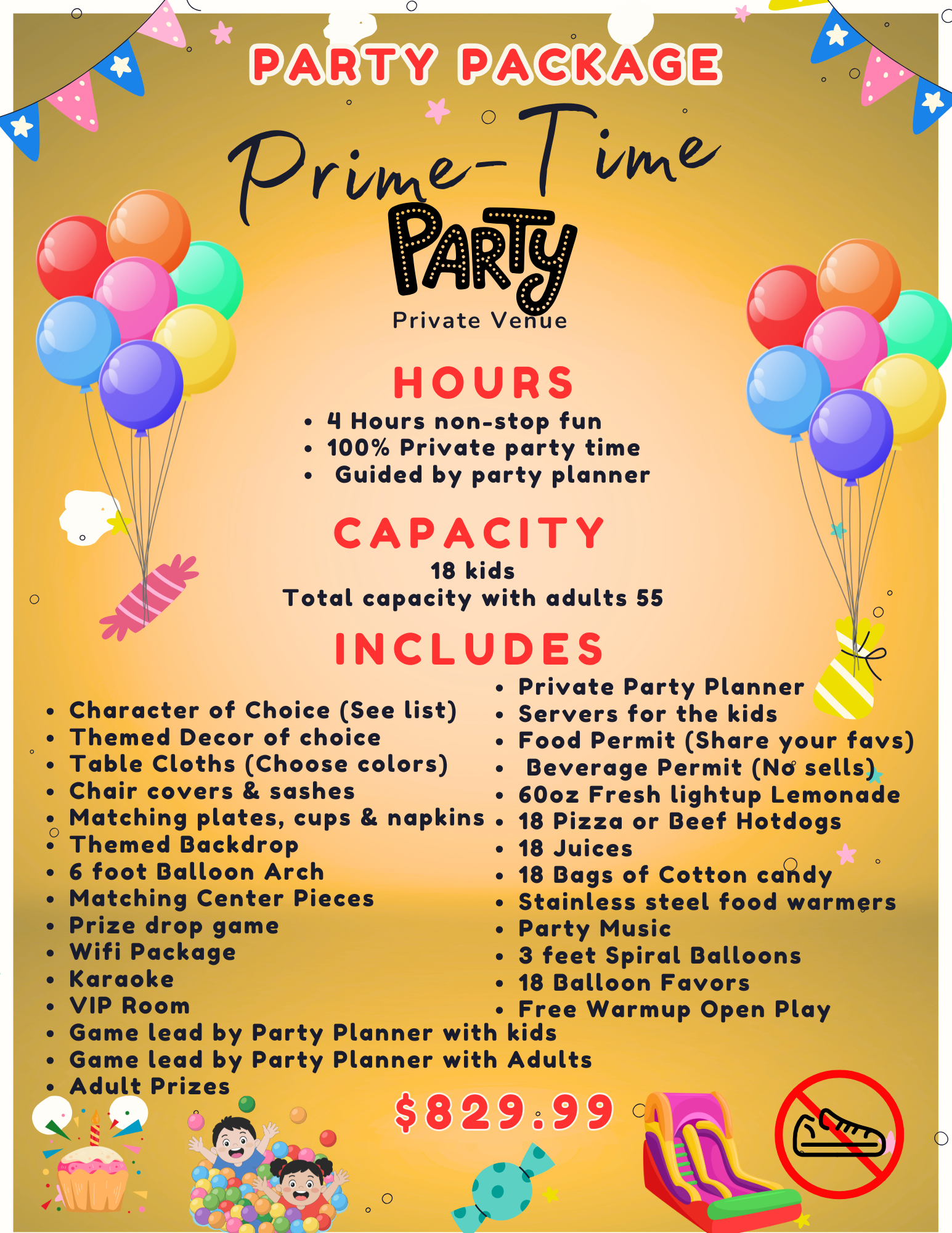 Celebrate with the Prime Time All- Inclusive Party Package!