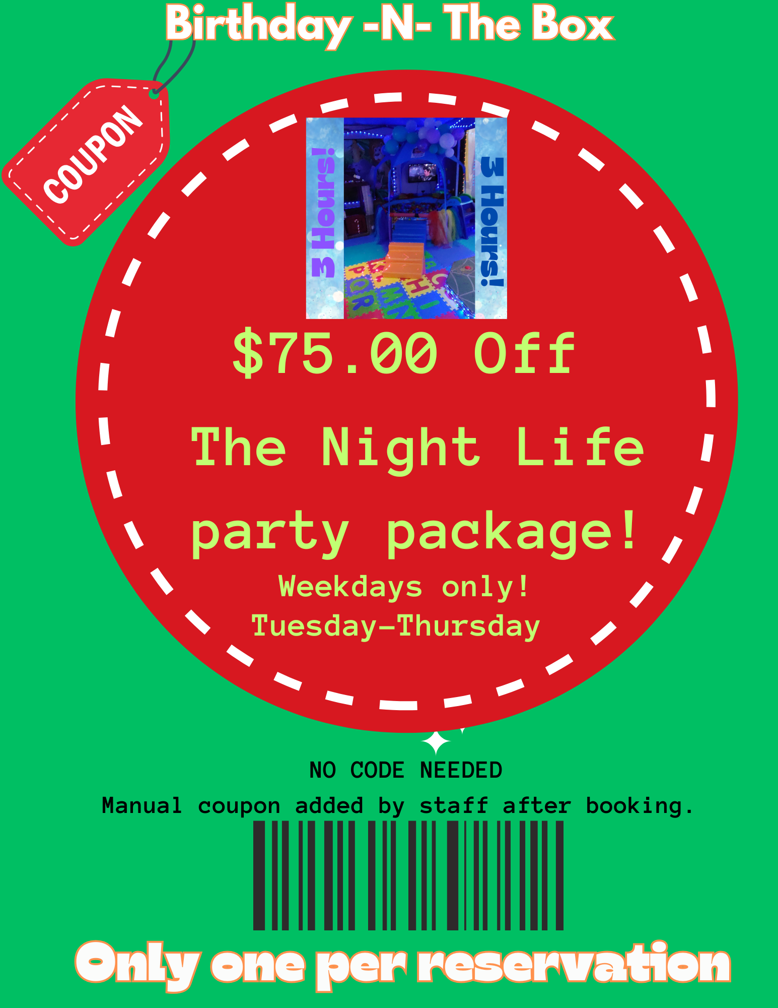 Feel free to call your Party Planner to add any coupons to your pre-existing reservation.